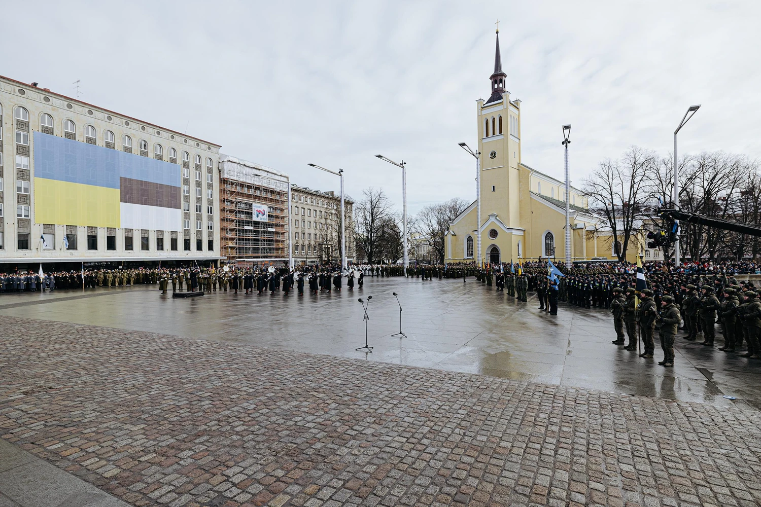 В 13:00 построение началось без задержек. Колонны двигались чётко, без пауз. Впечатление произвела синхронность подразделений Кайтселийта и резервистов — чувствовалась хорошая подготовка.